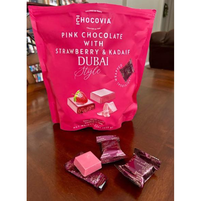 加拿大 Chocovia 杜拜風格草莓卡代夫絲夾心巧克力方塊 625g